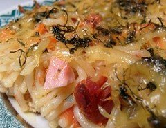 Отличное блюдо — запеканка из спагетти с овощами. В состав входят яйца и сыр, а весь список ингредиентов можно узнать,